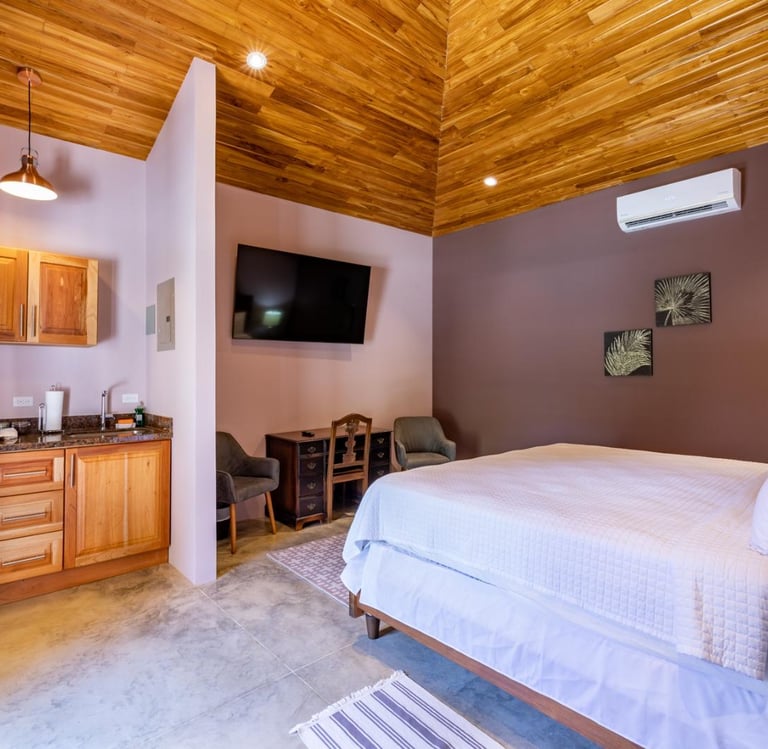 The adjacent property, known as Ocean Breeze and affectionately referred to as "the Temple," is reserved exclusively for the retreat. This property features a large pool that will serve as the main social and relaxation hub. Both Ocean Breeze and Refugio del Sol are just 200 meters, or a 5-minute walk, from Pelada Beach and a 10-minute walk to Guiones Beach.